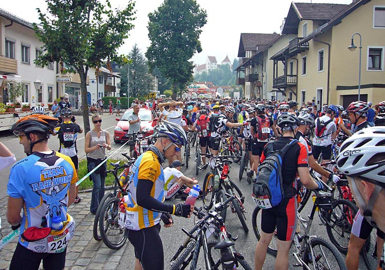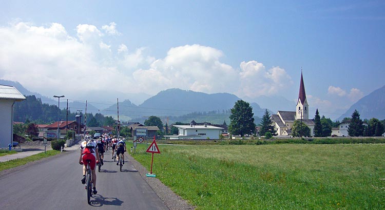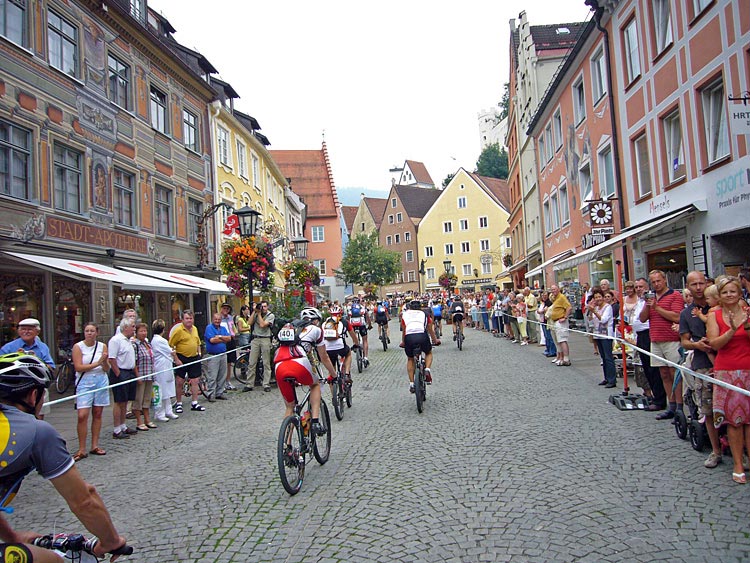 Med mängder av cyklister blev det ganska trångt och farten blev inte speciellt hög i början. Vi snirklade oss igenom de centrala delarna av Füssen och det stod massor av folk utefter gatorna och hejade. Det var en mäktig känsla att någon hejar på en för en gångs skull.