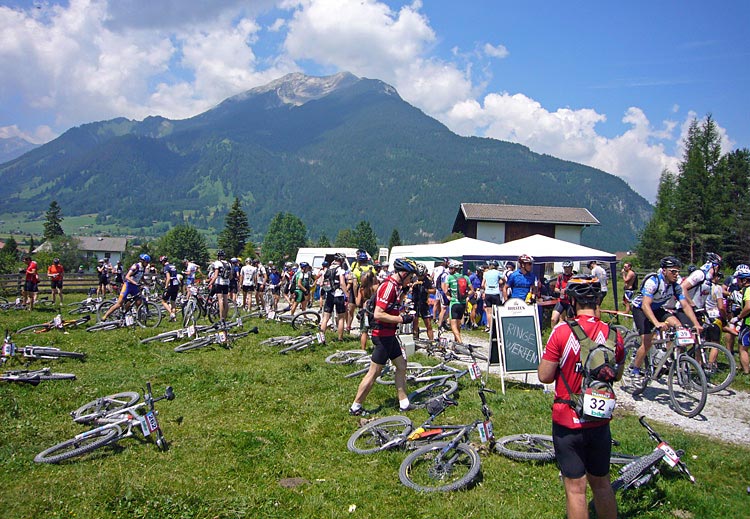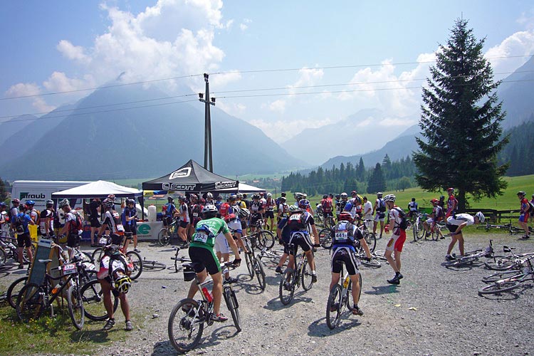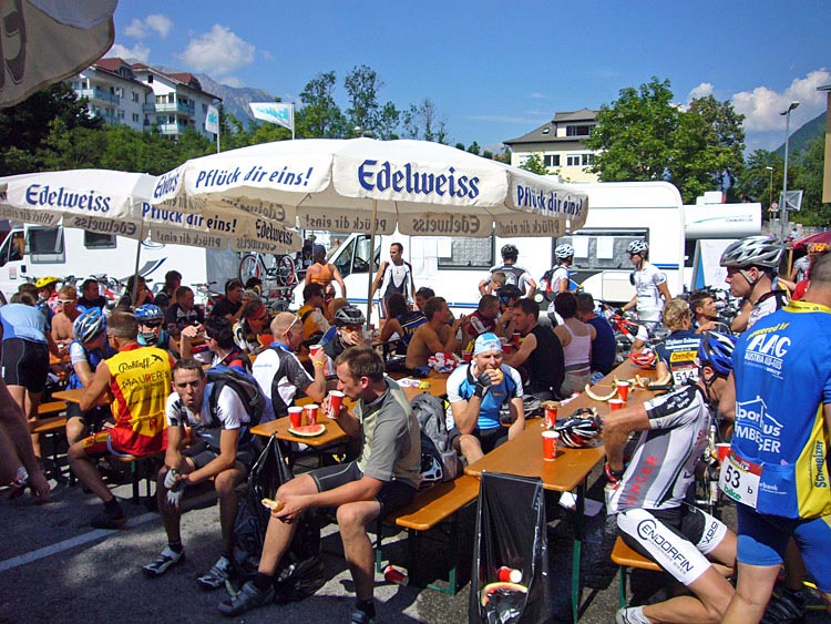 Första depån låg vid Heiterwang efter ca 30 km. Vi hade laddat upp cykelfickorna med Powerbars som vi tänkt äta under etapperna och stannade bara till snabbt och fyllde på vätska.