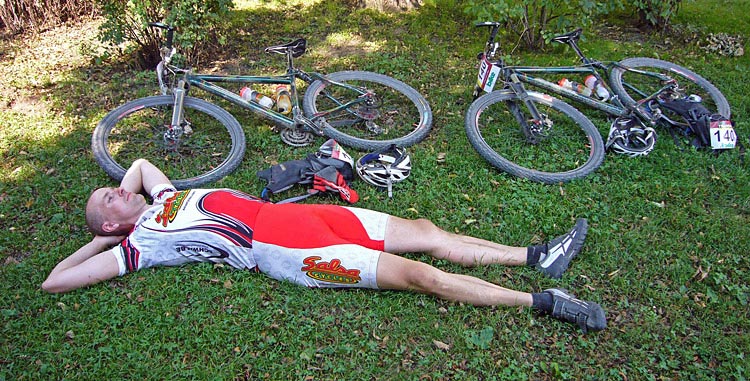 Till duscharna var det inte så lång kö då vi var ganska tidiga i mål, men varmvattnet hade för länge sedan tagit slut. Efter ombyte och klädtvätt gick vi igenom cyklarna. Den enda servicen var att smörja kedjan och kontrollera så att alla skruvar satt fast.