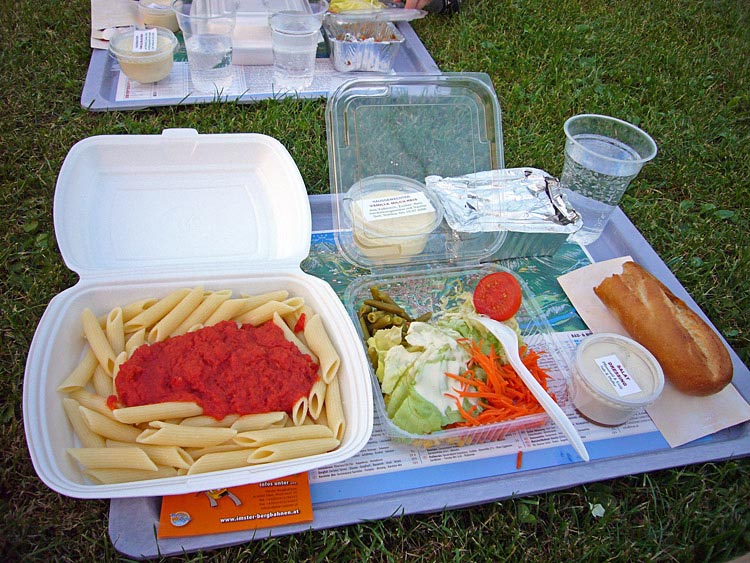 Den efterlängtade middagen serverades i närheten av campen och bestod av pasta, sallad och en smarrig efterrätt.