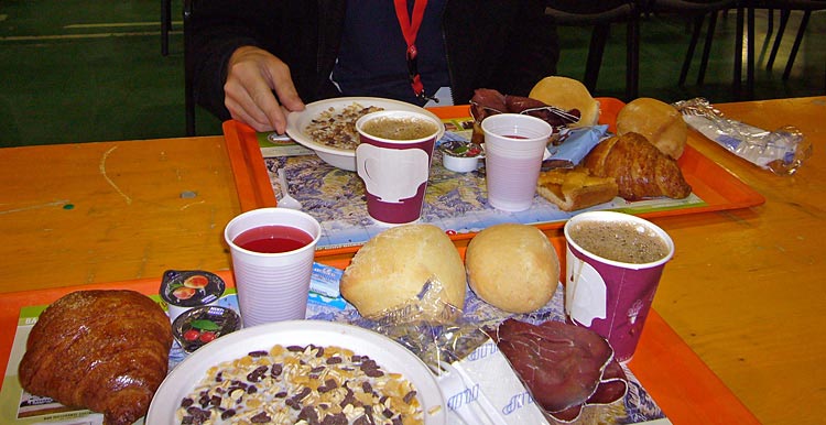Vi tycker det är värt att offra några minuters sömn på morgonen och gå upp lite före alla andra. För när vi satt och åt så klockade vi en kille som stod i frukostkön och för honom tog det ca 30min att komma fram.