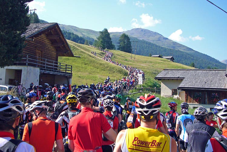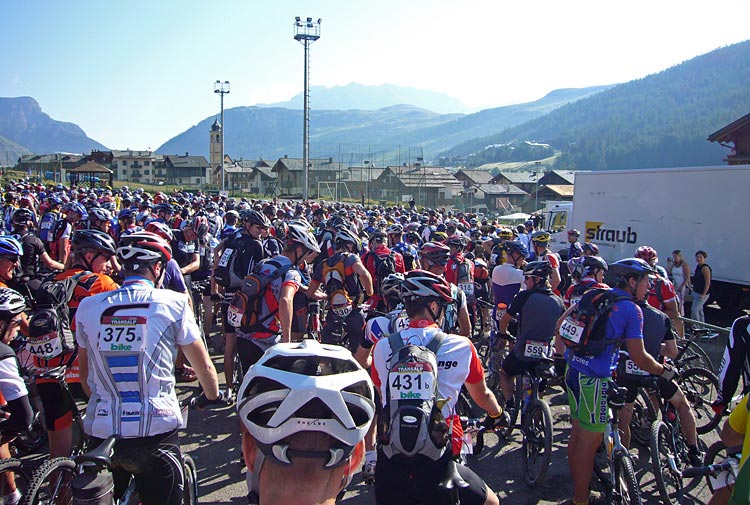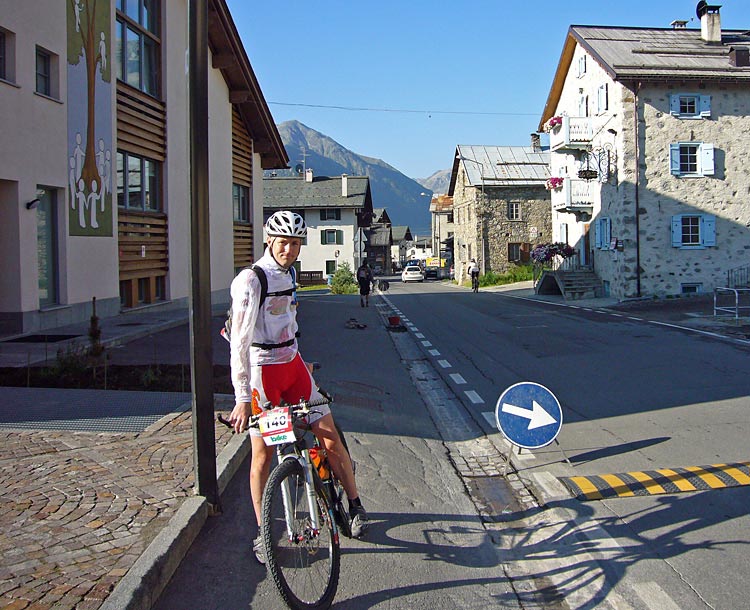 Starten gick prick kl 09.00. Några minuter senare rullde vi iväg på gatorna genom Livigno. Det är massor av folk som nyfiket står vid sidan och applåderar när cyklisterna rullar förbi.