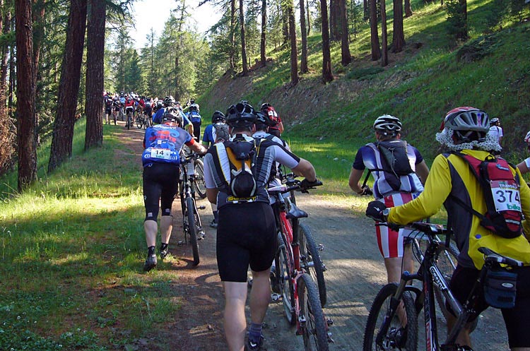 Direkt efter depån började stigningen upp mot den här upplagans högsta berg Borcetta di Forcola på 2768m. Inledningen var en bred och fin grusväg utefter bergssidan.