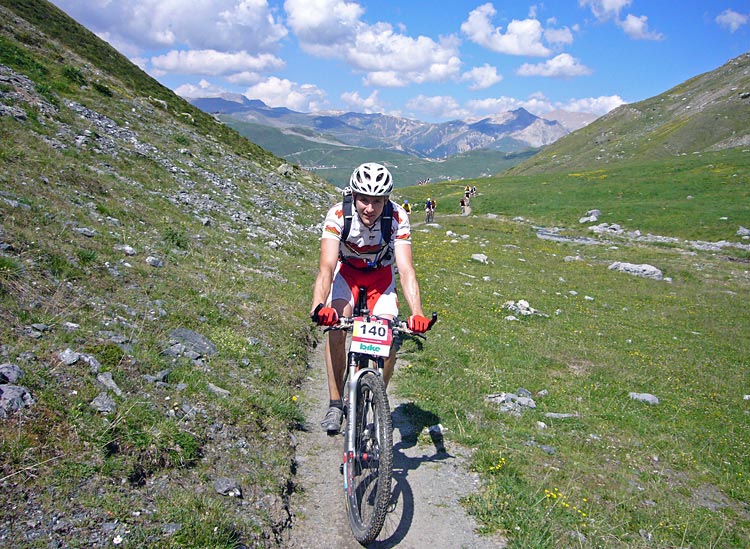 På krönet planade det ut lite grann och stigen blev lite bredare. Återigen uppe på cyklarna så passerade vi ganska många cyklister på vår väg upp.