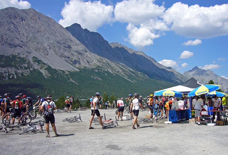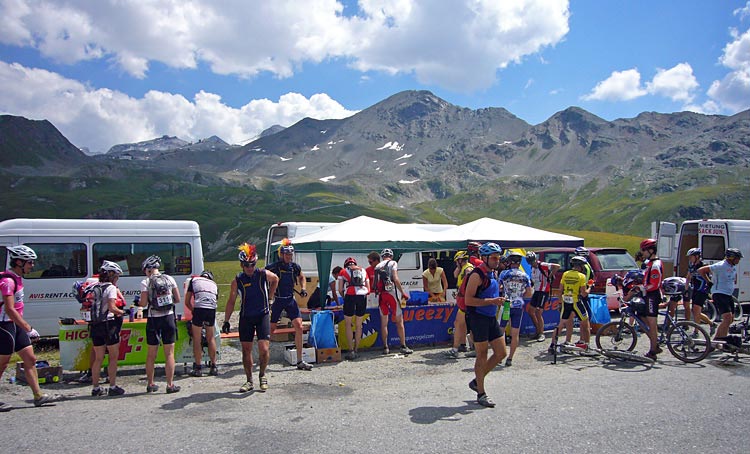 Stigen kom fram vid Umbrailpass och där låg dagens andra depå. Då vi var ganska sena hit upp, pga Anders olycka, så var det ganska urplockat ur fruktlådorna. Vi fyllde upp flaskor och Camelback med vätska inför den sista långa biten som återstod.