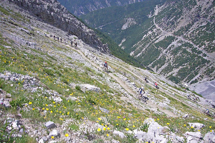 Stigen var en kvarleva från krigen och underlaget var grov sprängsten. Det var inga problem att cykla, i alla fall inte förrän vi kom ikapp andra cyklister.