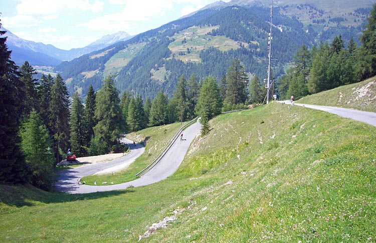 Ned från Umbrailpass var det asfalt och en riktig serpentinorgie började. 1100hm avverkades på ett ögonblick.