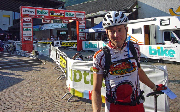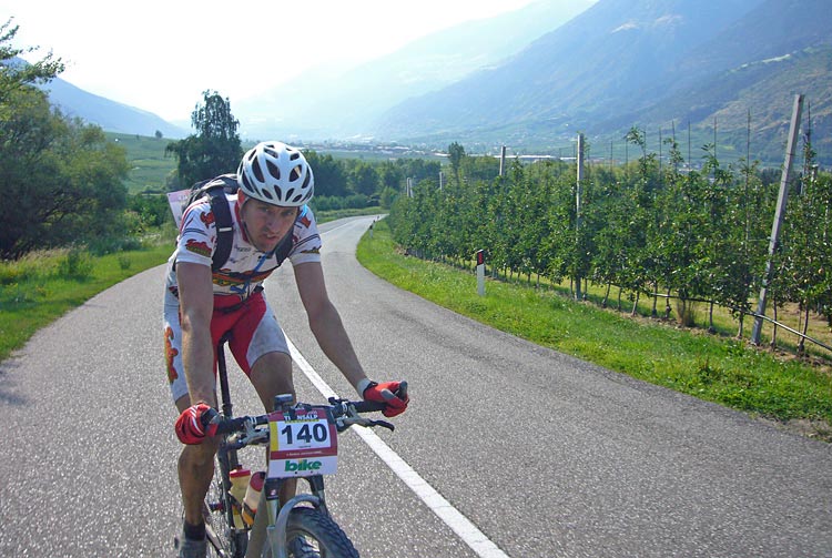Dagens sista depå låg i Morter och vi stannade till en kort stund. Det var inga andra som följde med oss därifrån så det blev till att åka själva. Vi passerade små grupper av cyklister men inga hade ork/vilja att hänga på oss, trots att vi släppte av och väntade in. Sista biten slingrade sig genom små vägar i Naturns och vi nådde målet kl 18.10, vilket innebar hela 9h 05 min i sadeln.