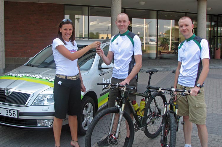 En Skoda Octavia Combi 4x4 FSI blev en lämplig modell för ändamålet. En bekväm långfärdsbil med ett stort lastutrymme där cyklarna och packningen lätt skulle få plats. Bilen dekorerades med teamlogor och gjorde verkligen ett professionellt intryck.