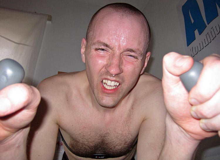 Ett program stegade med jämna mellanrum upp belastningen och under tiden togs det blodprov för att få fram mjölsyrenivåerna. Det blev en svettig halvtimme och vi trampade tills vi inte orkade längre.